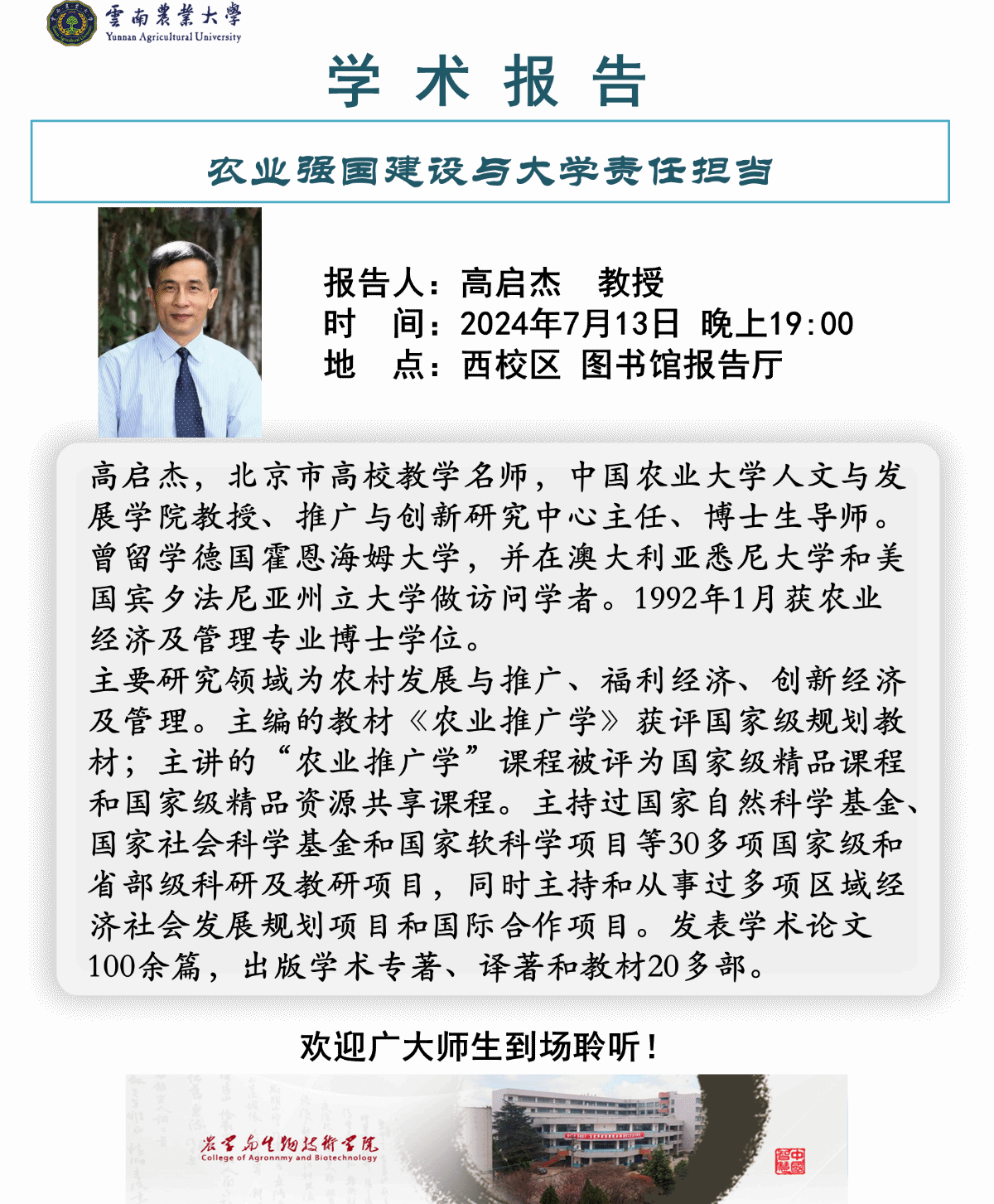 7月13日“紅土地”大講堂:農業強國建設與大學責任擔當