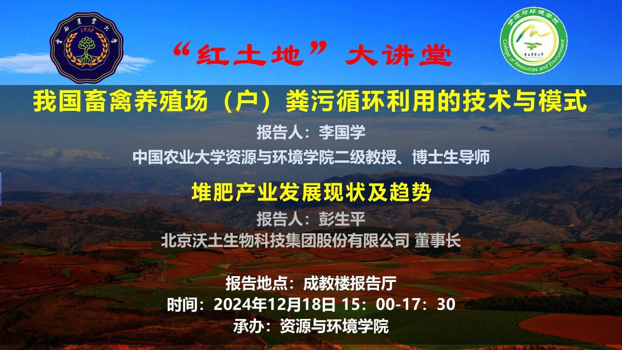 12月18日“紅土地”大講堂:我國畜禽養殖場(戶)糞污循環利用的技術與模式