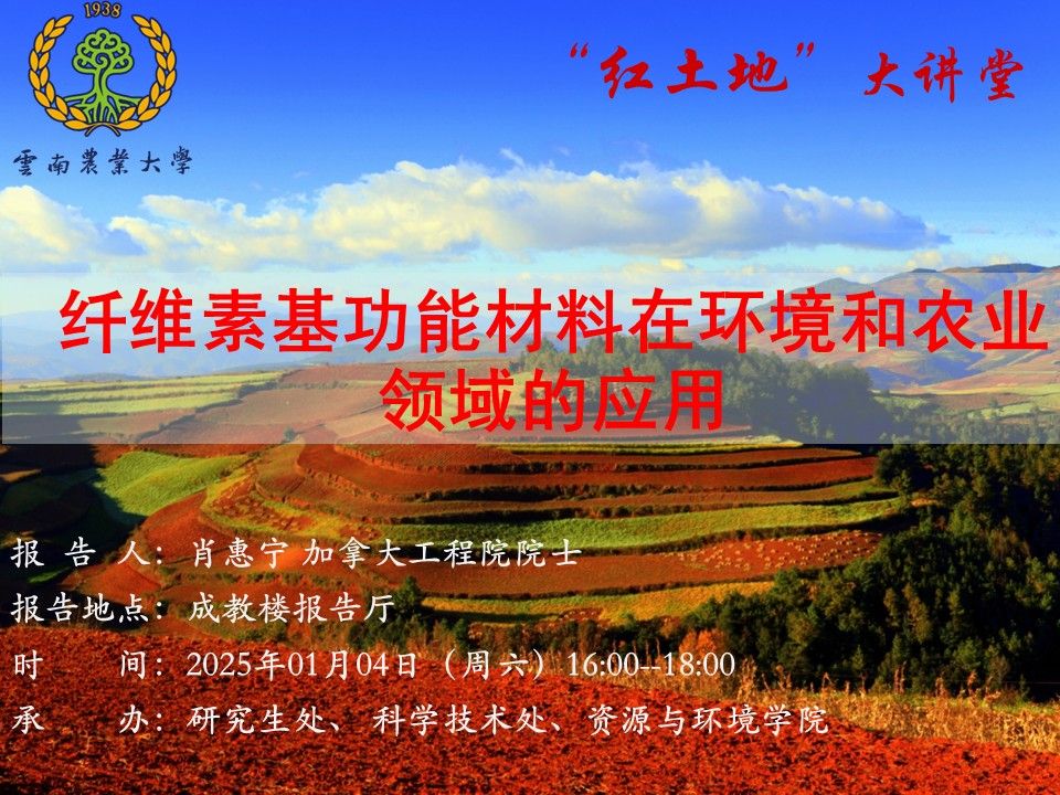 1月4日“紅土地”大講堂:纖維素基功能材料在環境和農業領域的應用