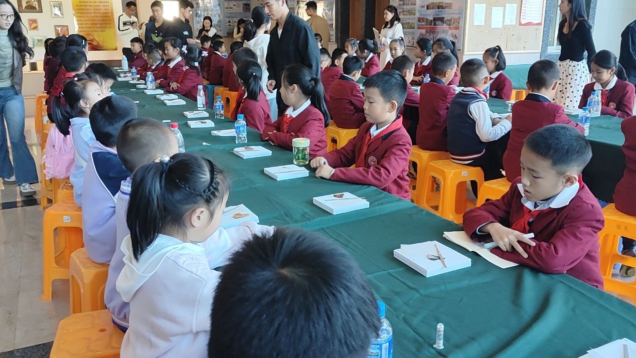 學院尋野昆蟲社的成員們現場指導小學生們制作昆蟲標本。小朋友們認真學習、專注投入,充分發揮動手實踐能力,完成了自己的作品。