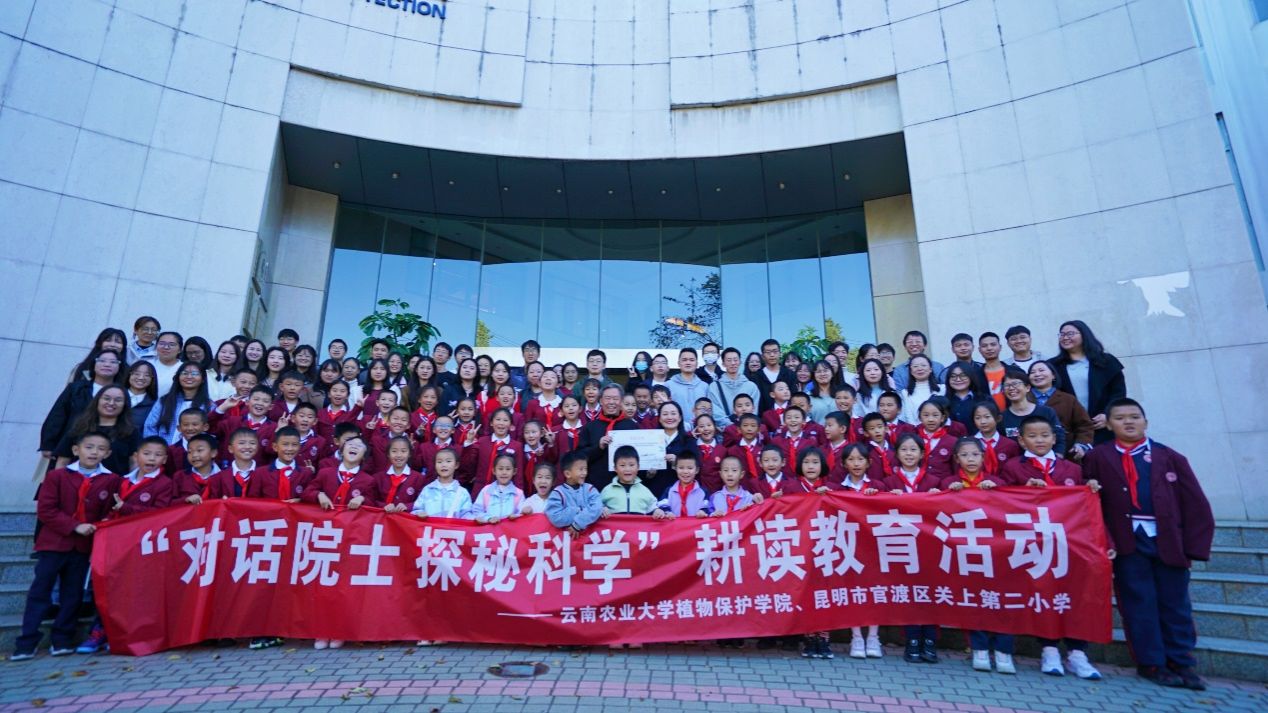 本站消息 11月14日,由植保學院與官渡區關上第二小學聯合開展的“對話院士 探秘科學”耕讀教育活動在學校舉行。“時代楷模”朱有勇院士出席活動并同孩子們互動,院長蔡紅主持活動。云南省青年科技工作者協會副會長、昆明市中小學科技創新協會會長胡磊,關二小校長王蜃淋,學院黨委副書記李春艷,團學辦有關人員,2024級學碩班學生代表及關二小師生代表共計120余人參加活動。