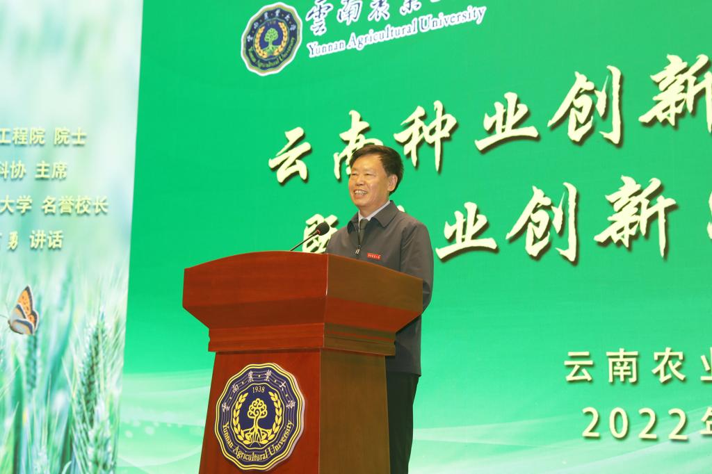 楊生超代表學(xué)校發(fā)布種業(yè)創(chuàng)新成果。他圍繞糧食作物、經(jīng)濟(jì)作物和畜禽種業(yè)3個(gè)方面,重點(diǎn)發(fā)布了水稻、玉米、麥類、馬鈴薯、三七等中藥材、蔬菜、甘蔗、生豬、肉牛羊、地方雞、葡萄和基因編輯技術(shù)等種業(yè)創(chuàng)新成果,介紹了學(xué)校學(xué)科建設(shè)及平臺(tái)團(tuán)隊(duì)建設(shè)情況,展現(xiàn)了學(xué)校為國(guó)家和云南糧食安全作出的重要貢獻(xiàn)。
