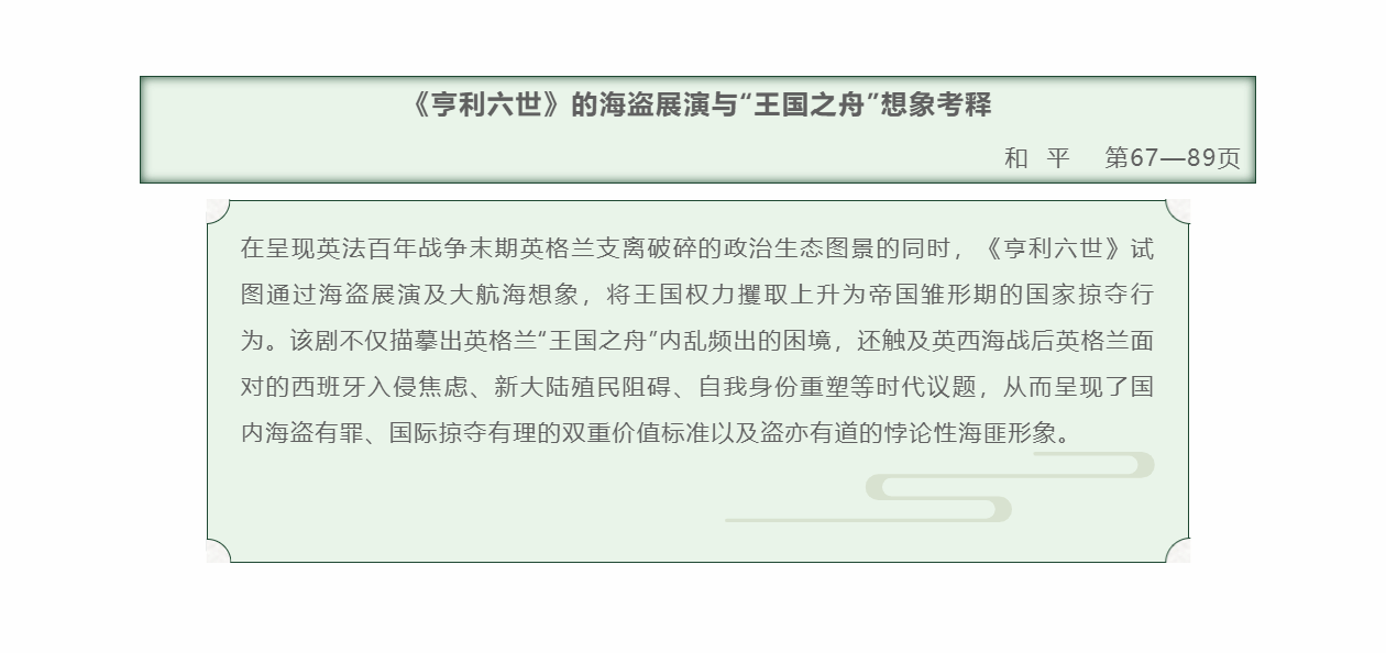 本站消息 近日,外語學院教師和平博士作為獨立作者撰寫的論文《〈亨利六世〉的海盜展演與“王國之舟”想象考釋》在《外國文學評論》2025年第1期發表。
