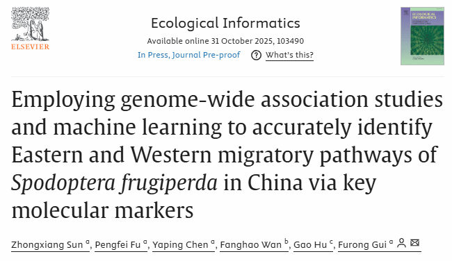 學校生物安全研究團隊在草地貪夜蛾遷飛領域發表新進展